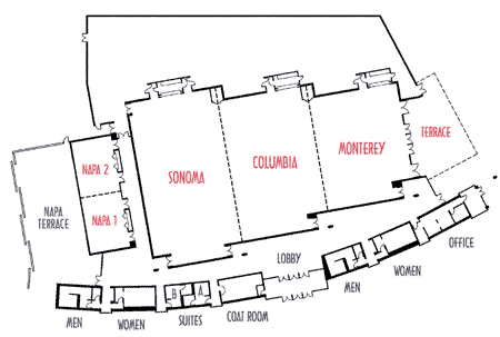 Each room holds up to 60 guests and may